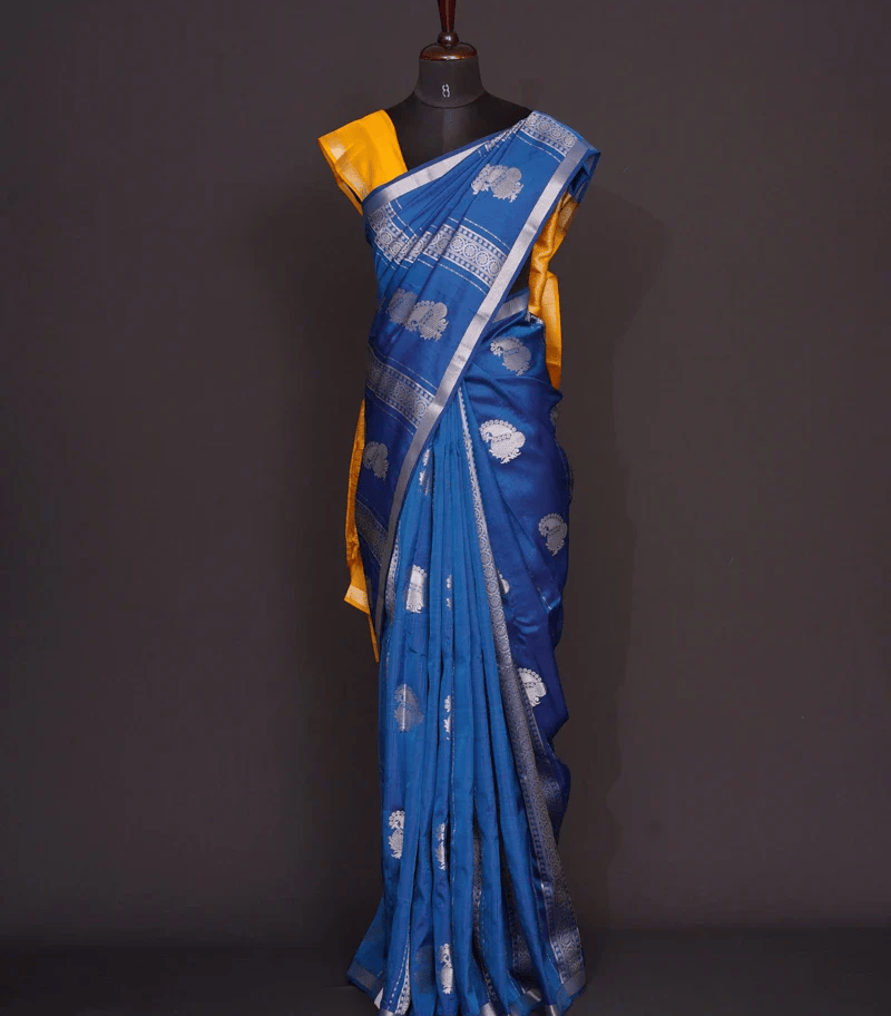The Royal Blue Mysore Silk Saree is a symbol of elegance and sophistication, crafted from the finest Mysore silk that drapes beautifully with a luxurious sheen. Its deep, rich blue shade is complemented by intricate golden zari work along the borders, creating a regal look that is perfect for special occasions. The saree’s soft, smooth texture and timeless design make it a favorite choice for weddings, festivals, and celebrations. With its traditional yet contemporary appeal, the Royal Blue Mysore Silk Saree adds a touch of royal charm, ensuring that the wearer stands out with grace and poise at any event.